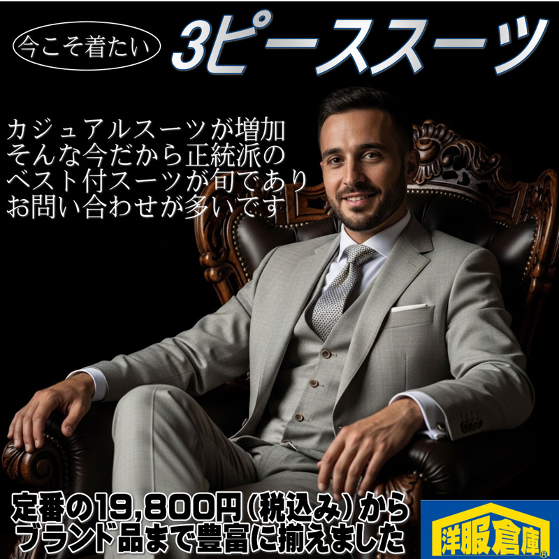 お洒落な3ピーススーツ大量入荷!